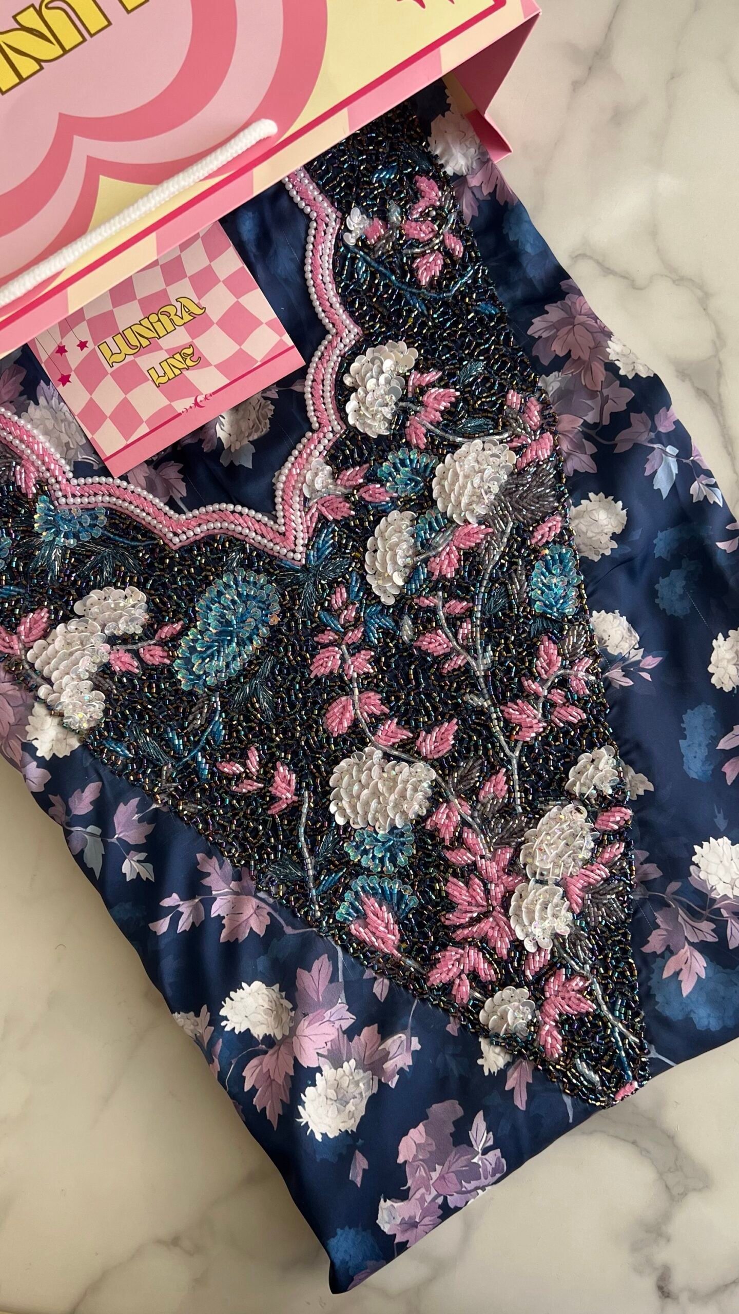القماش حرير إيطالي، الخوار فصوص رقم 6 بدقة عالية . طول القماش 3.5 وار، و طول العرض عرضين. قياس الرقبة 8 انش طول في 6.7 انش عرض.