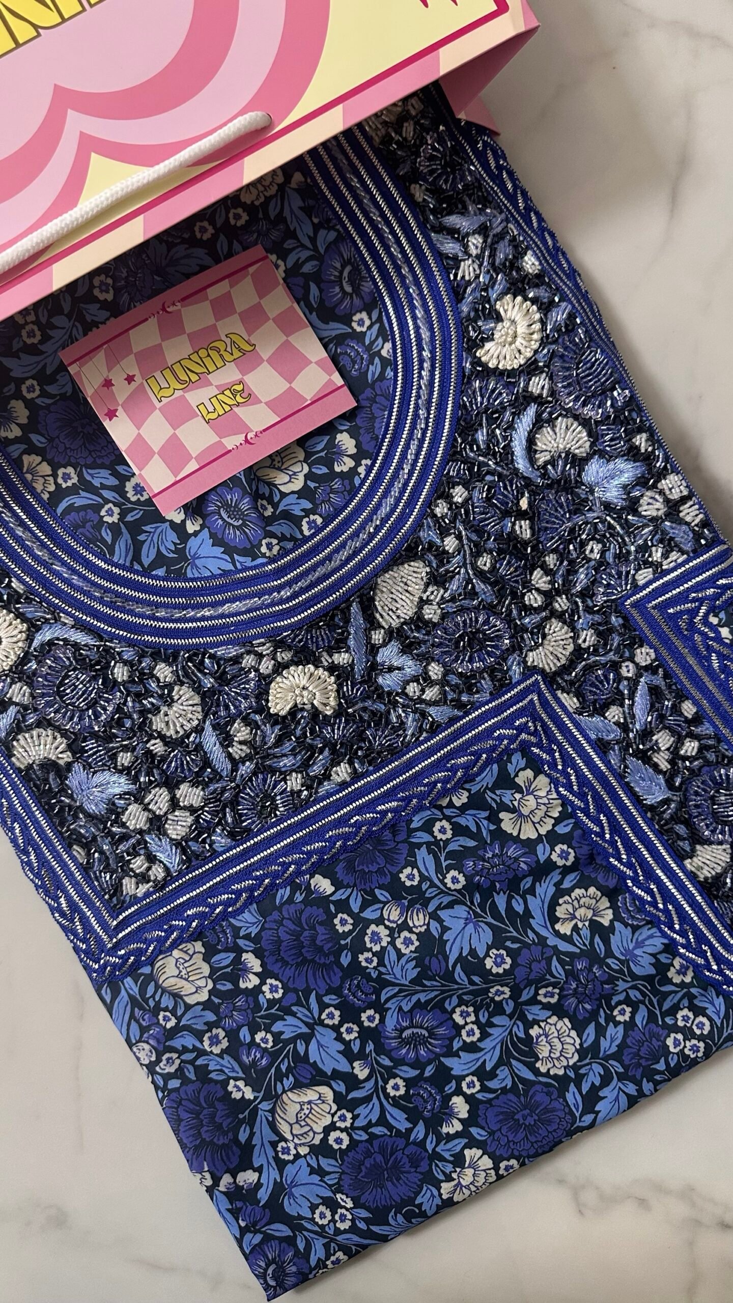 القماش قطن، الخوار خرز شك يدوي ولولو وفولك و خيوط نايلون بدقة عالية .طول القماش 4 وار. قياس الرقبة 7.5انش طول في 7 انش عرض