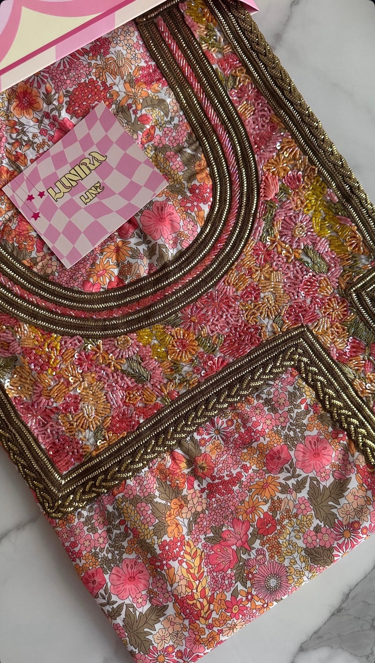 القماش قطن، الخوار خرز شك يدوي ولولو وفولك و خيوط نايلون بدقة عالية .طول القماش 4 وار. قياس الرقبة 8 انش طول في 7 انش عرض